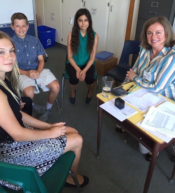 [Photo] West Vancouver Gleneagles students with examiner Sarah Mann in a Group Communication Skills exam June 2015